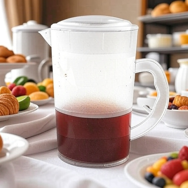 This 1.9 Litre Polycarbonate Jug with Lid is perfect for serving cocktails, juices, or other beverages.