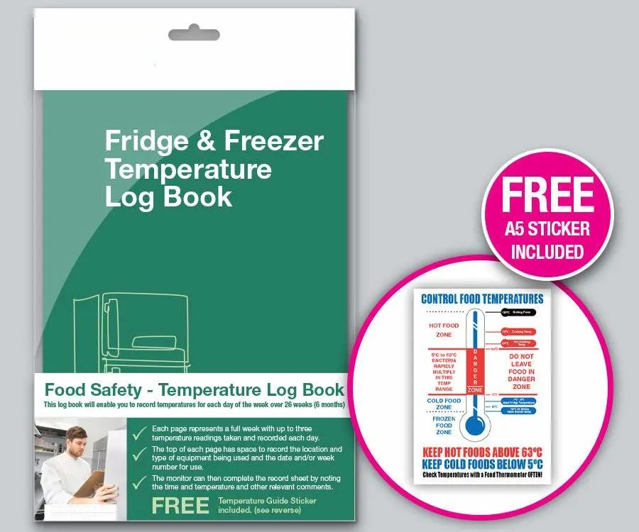 A5 Fridge & Freezer Temperature Log Book with Free Control Food Temperatures A5 Sticker