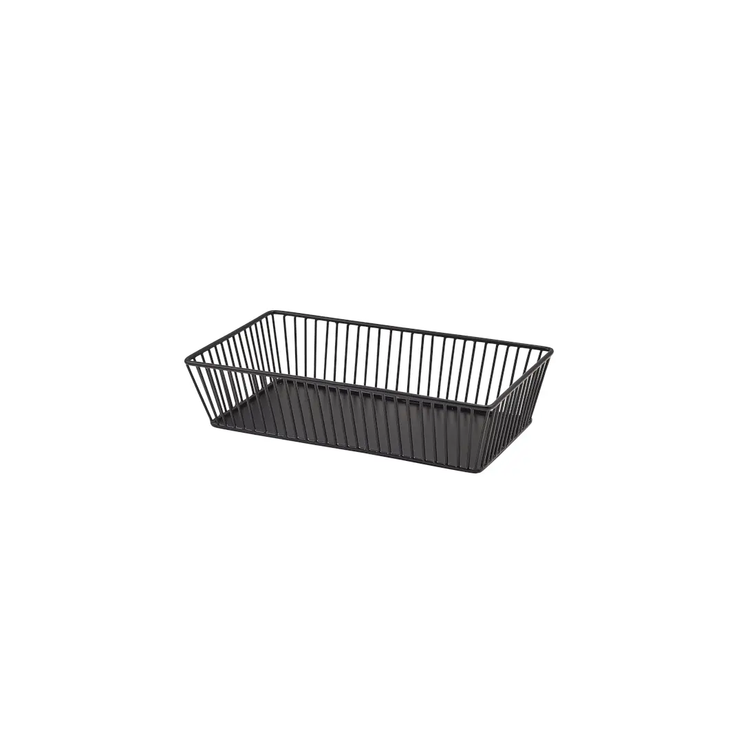 The Black Wire Display Basket GN 1/3 is designed for modern food presentation.