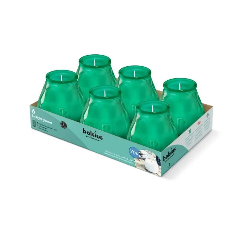 Bolsius Twilight Green Candles provide a vibrant green accent to any table or event space.
