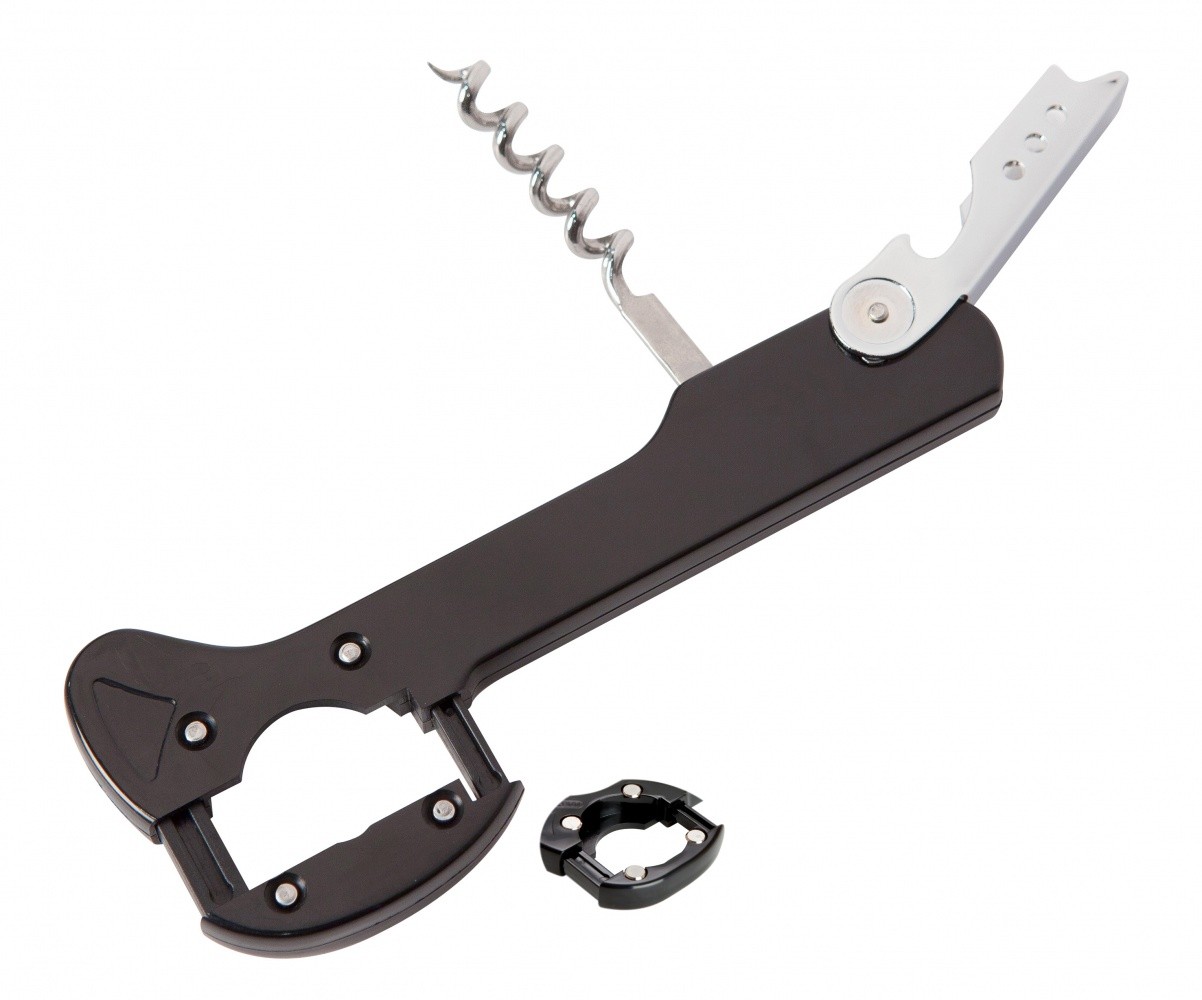 Waiters Friend Bottle Opener with pirouette style corkscrew and incorporated 4-wheel drive foil cutter for effortless removal of foil.