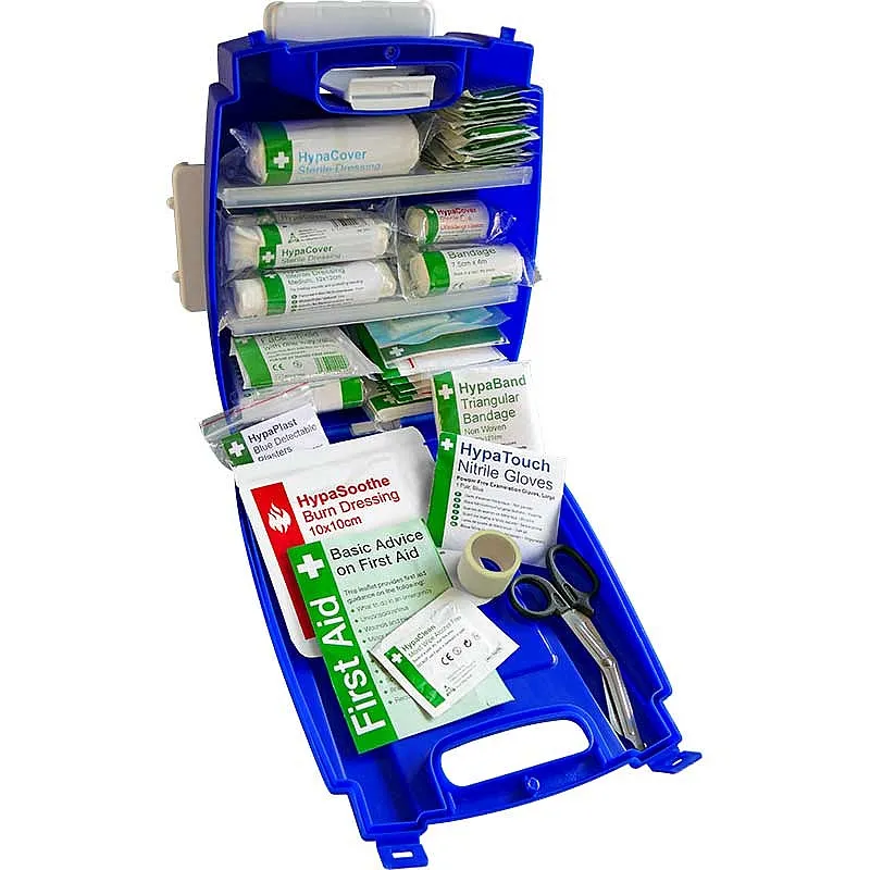 View larger catering first aid kits for higher-risk workplaces. Complete your safety setup with PPE and hygiene supplies.