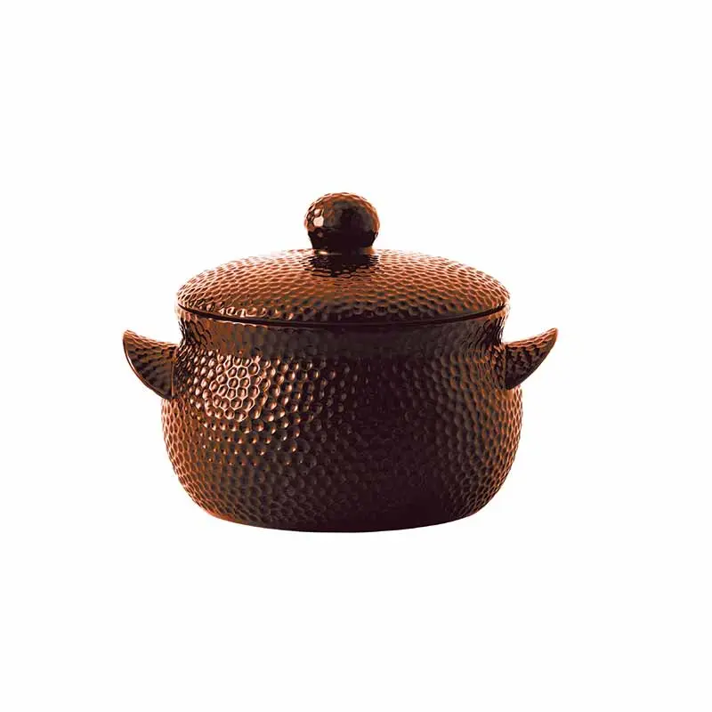 Made from durable ceramic with a hammered copper finish, it combines style and functionality.
