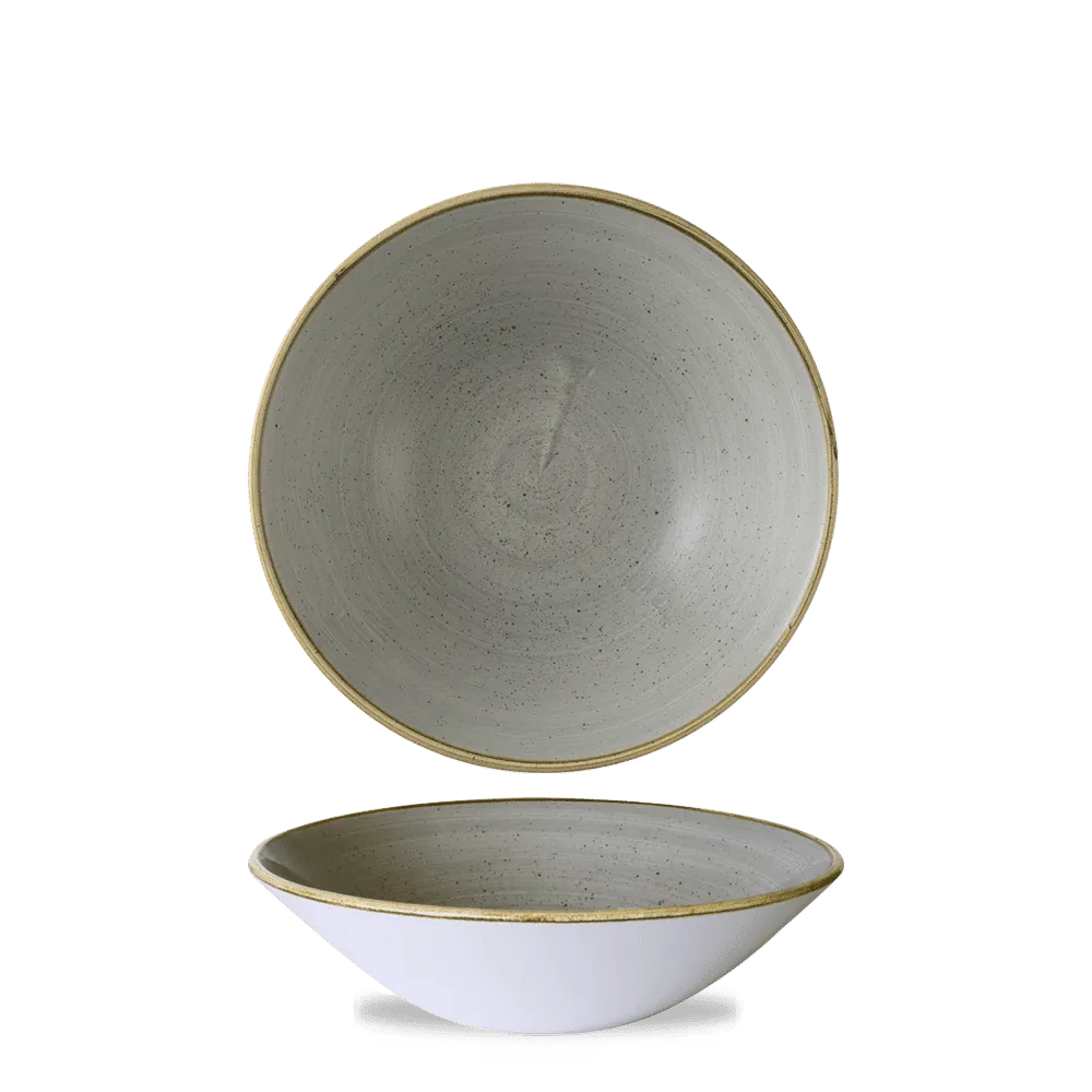 The Churchill Stonecast Peppercorn Grey Deep Coupe Bowl 19.6cm showcases the iconic Stonecast design with hand-applied spinwash, speckle effect, and rustic edge.