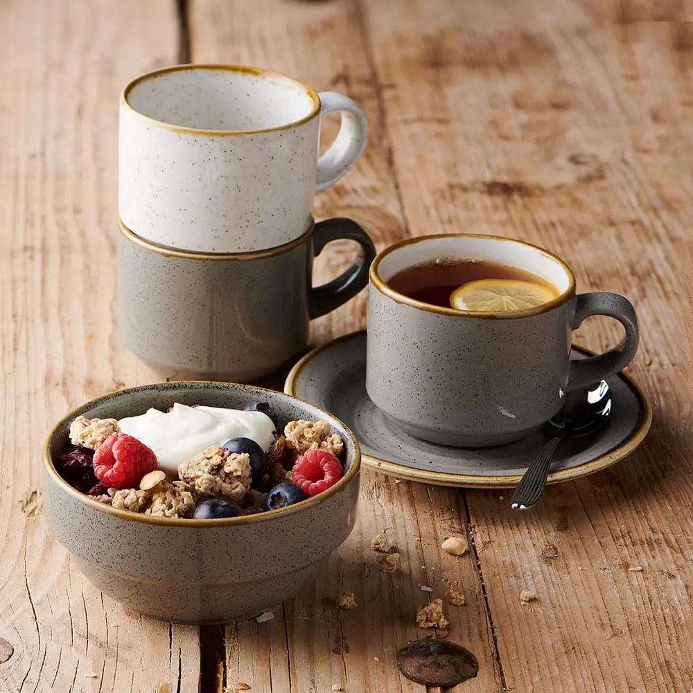 CHURCHILL Stonecast Peppercorn Grey Stacking Cup 22cl – Pack of 12