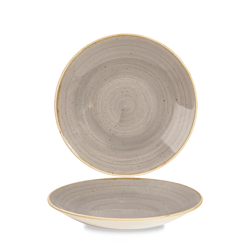 The Churchill Stonecast Peppercorn Grey Deep Coupe Plate 22.5cm combines the iconic Stonecast design with hand-applied spinwash, speckle effect and rustic edge.
