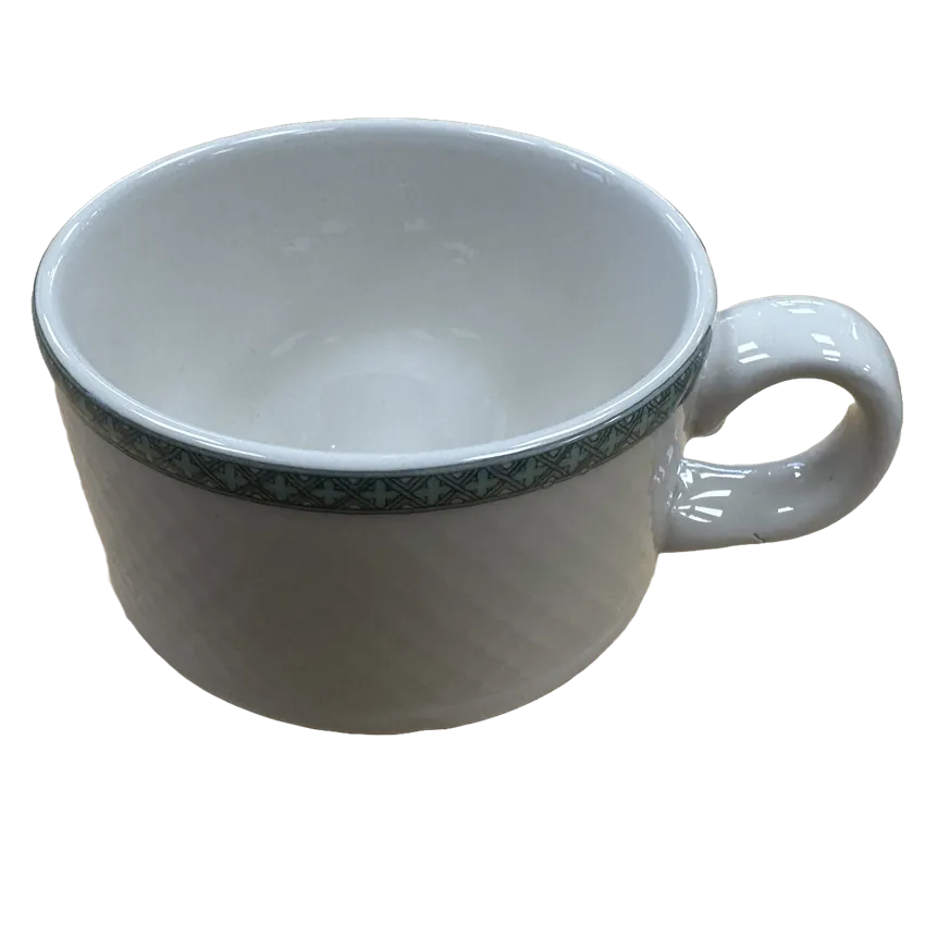 The Dudson Chantilly Stacking Teacup 8oz is designed for efficient service. Ideal for tea and hot beverage presentation. Manufactured from durable vitrified porcelain. Finished in white glaze with a decorative green Chantilly border. Stacking design saves space during storage. Strong and practical for professional use. Supplied as a pack of 9 cups. Last remaining stock.