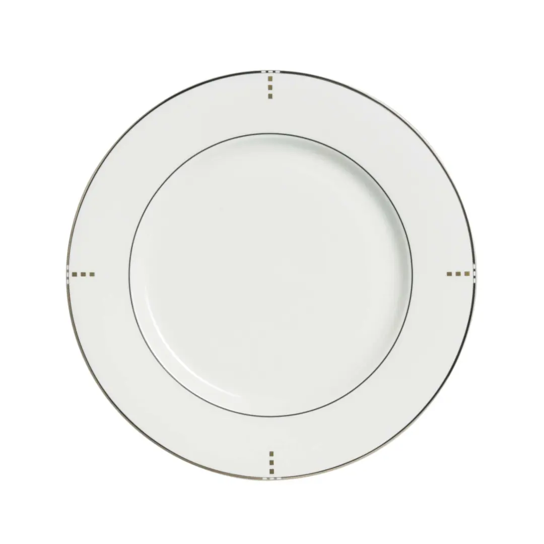 The Cubiq pattern focuses on clean lines and symmetry. Gold square detailing and platinum accents create a balanced, understated finish. Plates stack neatly to enhance the visual effect.
