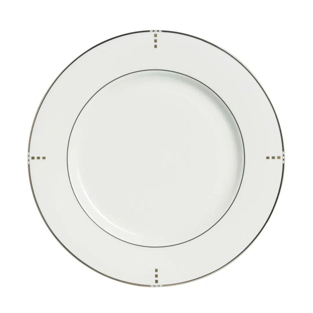 The Cubiq design focuses on symmetry and clean geometry. Gold square detailing and platinum accents add definition without excess. Plates stack neatly for a striking visual effect.