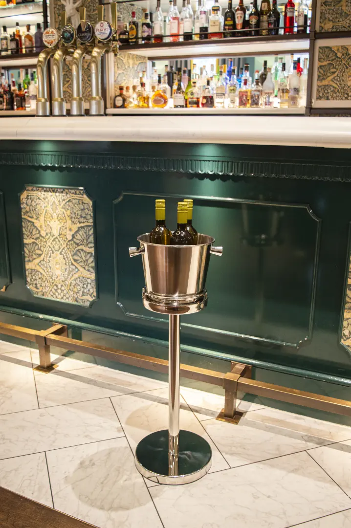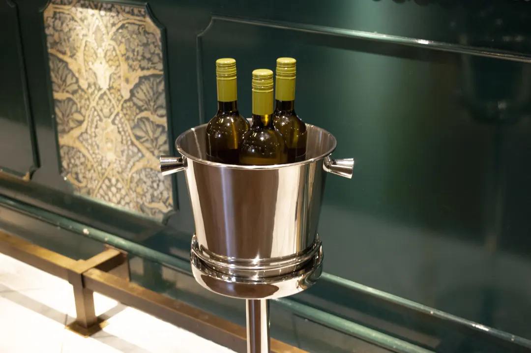 The combination of satin and polished finishes gives a clean, modern appearance suited to premium dining spaces. The wide diameter ensures bottles sit securely, while the stainless-steel body maintains temperature during service without excessive condensation.