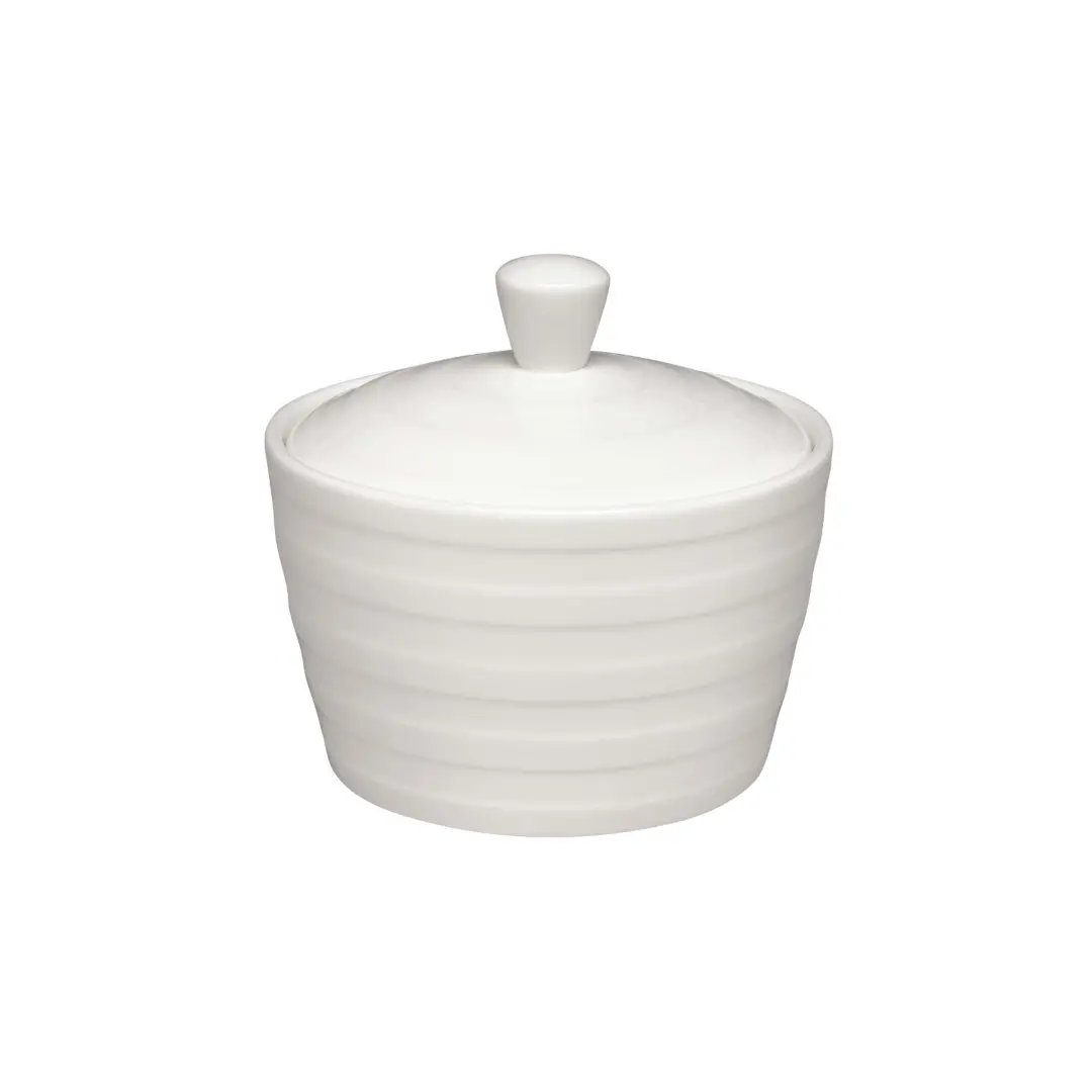 The Elia Essence Covered Sugar Bowl 20cl is made from Premier Bone China with a warm cream glaze and concentric circle detailing.