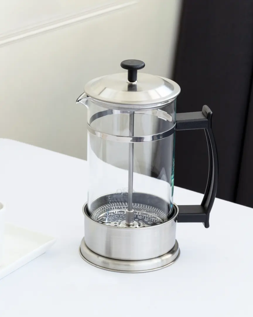 The triple filter system ensures a smooth, clean press, perfect for coffee or loose-leaf tea. Built for professional use, this cafetiere balances style, functionality and efficiency.