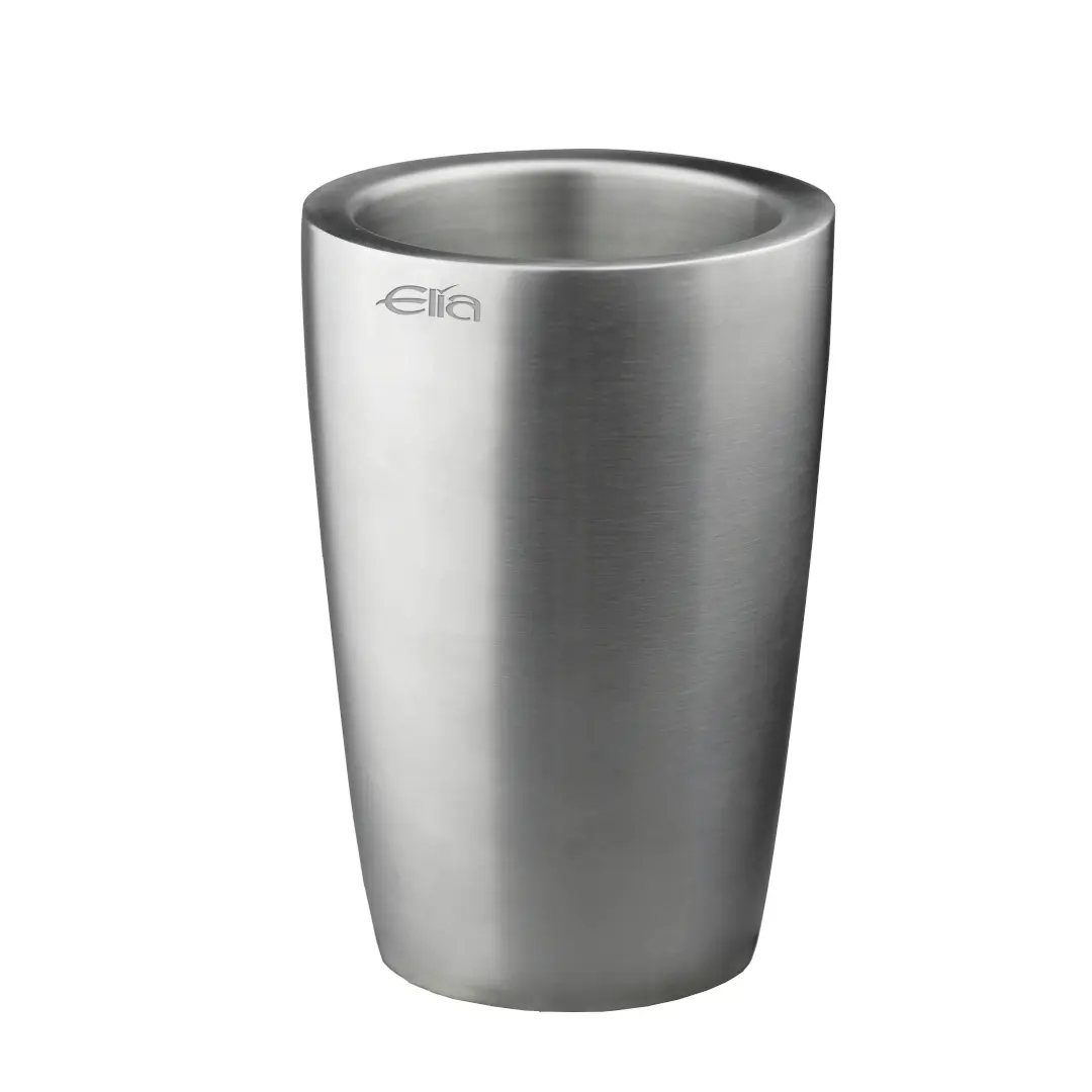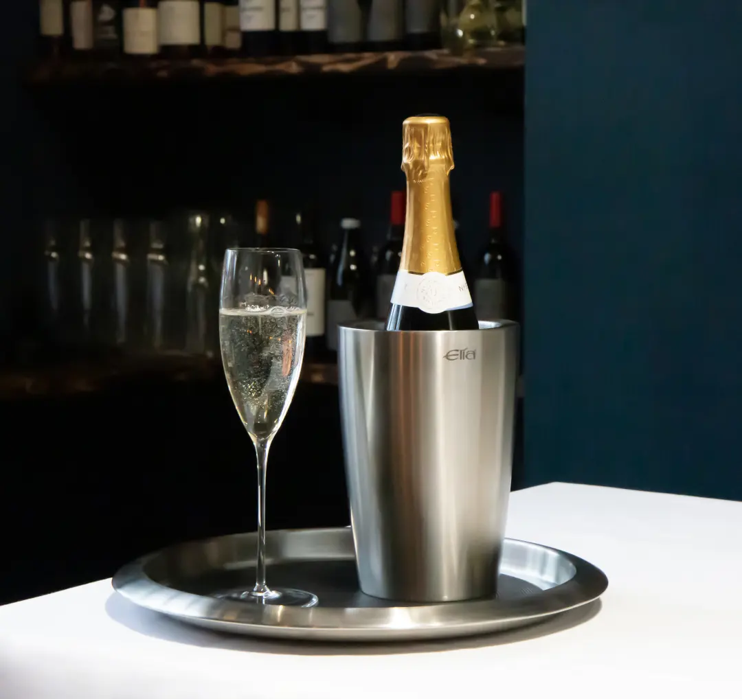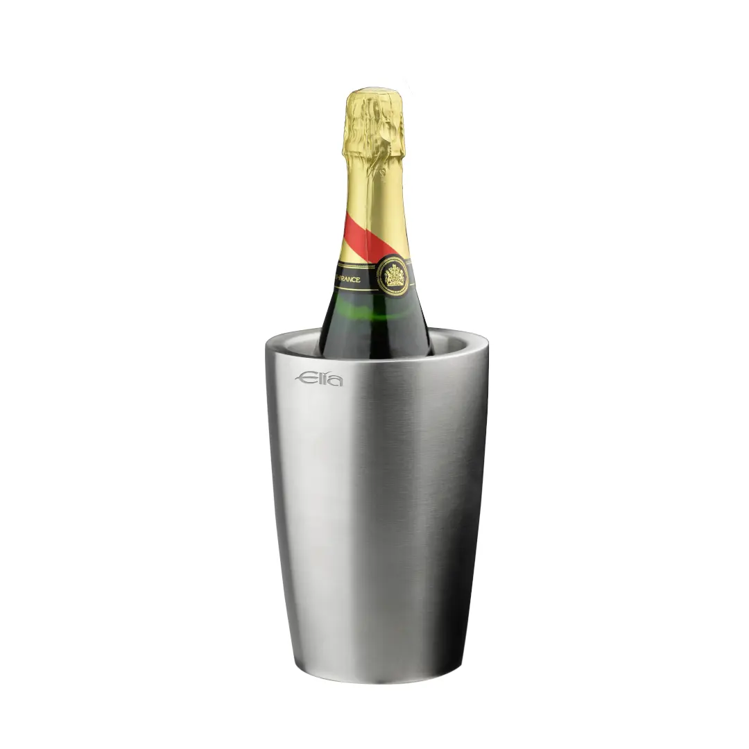 The Elia Satin Stainless Steel Bottle Cooler offers reliable temperature control for premium wine and champagne service.