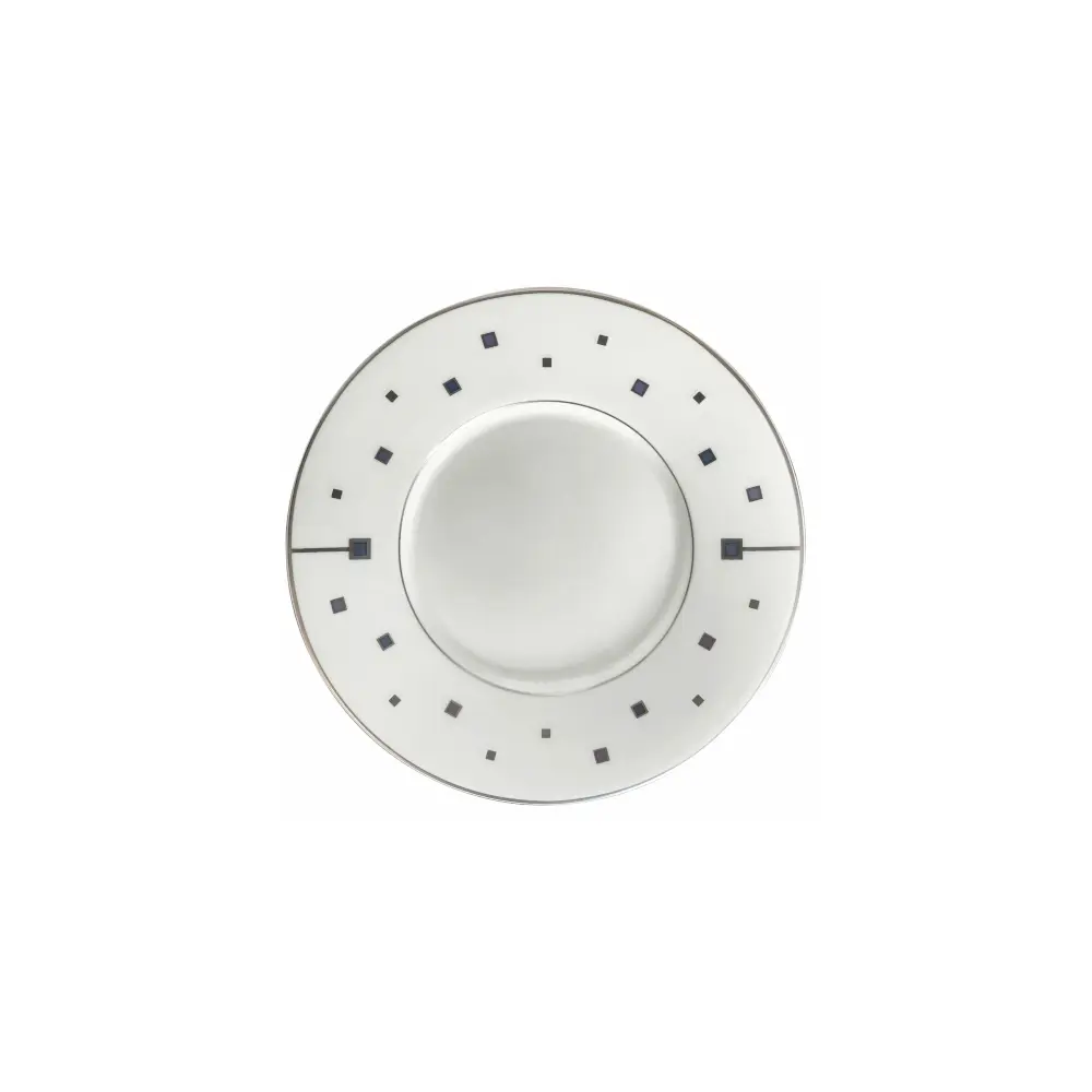 The Virtu range features a contemporary geometric style with bold colour contrast. Platinum edging frames the tea cup cleanly while maintaining a refined table presentation.