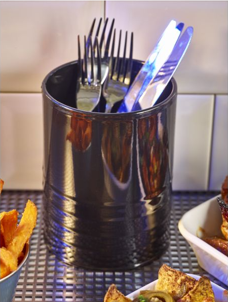 Our 11 x 14.5cm Black Galvanised Steel Can is great for holding cutlery or serving appetisers and sides such as fries, onion rings and chicken wings.