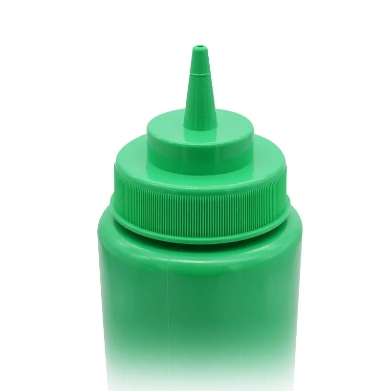 The squeezable body and narrow tip allow precise portioning, while the green cap ensures easy identification and reduces service errors.