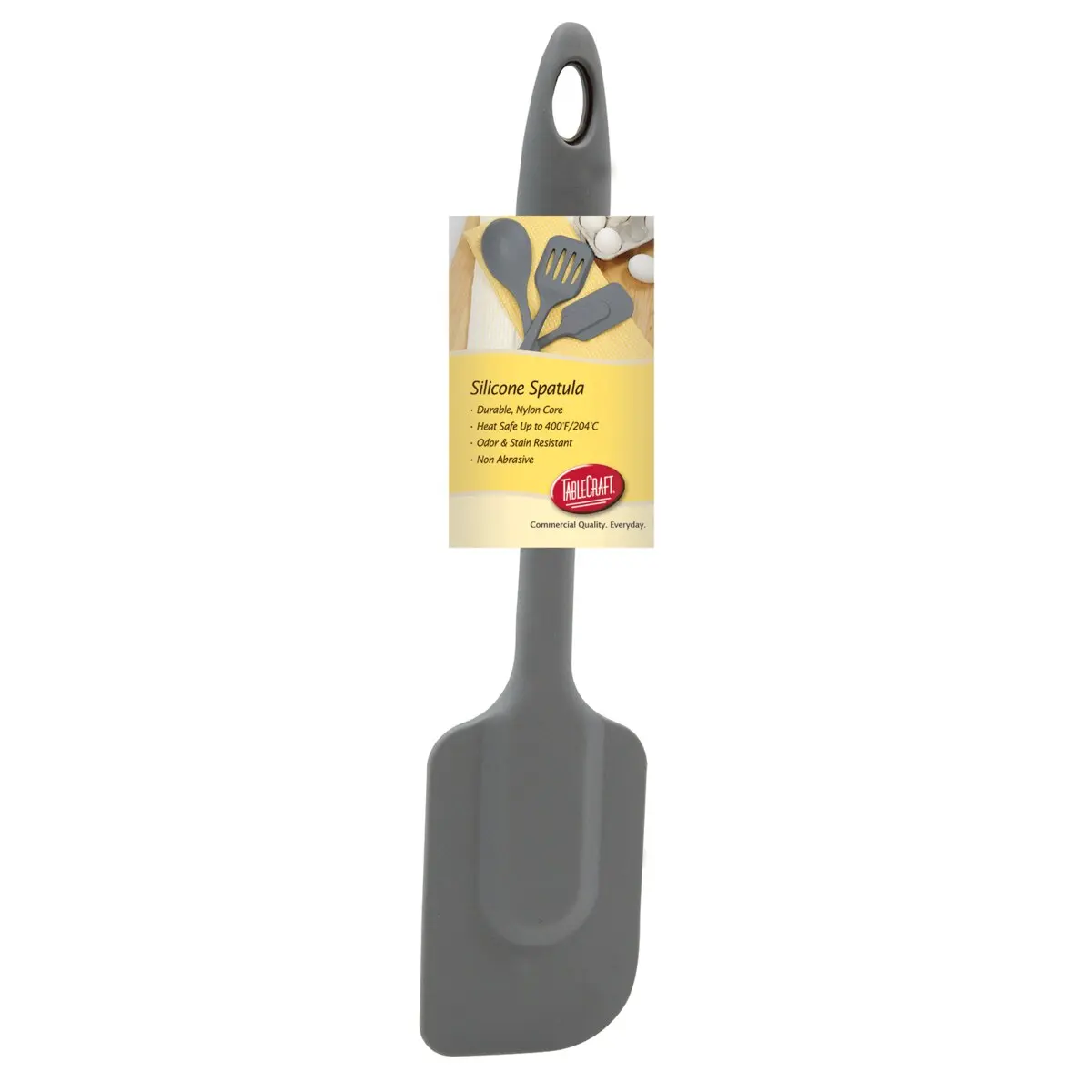 The Grey High Heat Silicone Spatula is designed for professional kitchens and non-stick cookware.