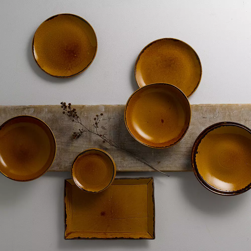 The Dudson Harvest Brown Coupe Plate brings a warm, rustic style to your table.