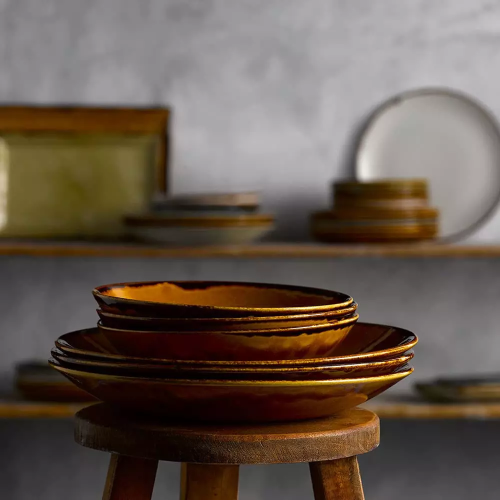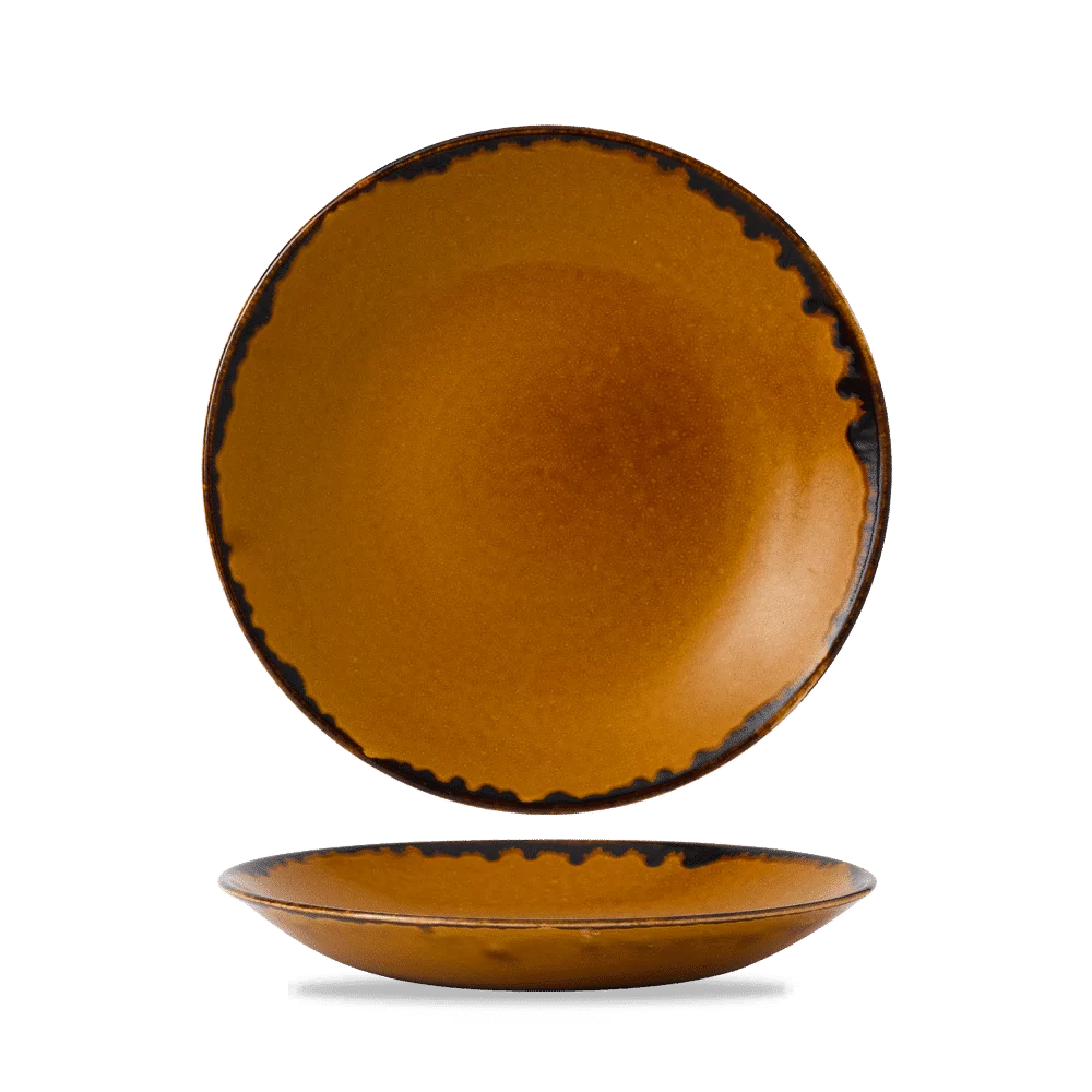 The Dudson Harvest Brown Deep Coupe Plate offers a rustic, artisan style with earthy tones.