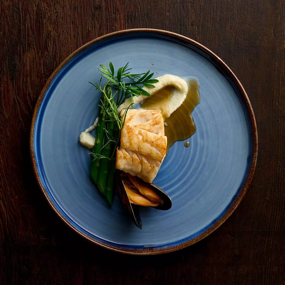 The Dudson Harvest Indigo Walled Plate brings a rustic, handcrafted style to modern dining.