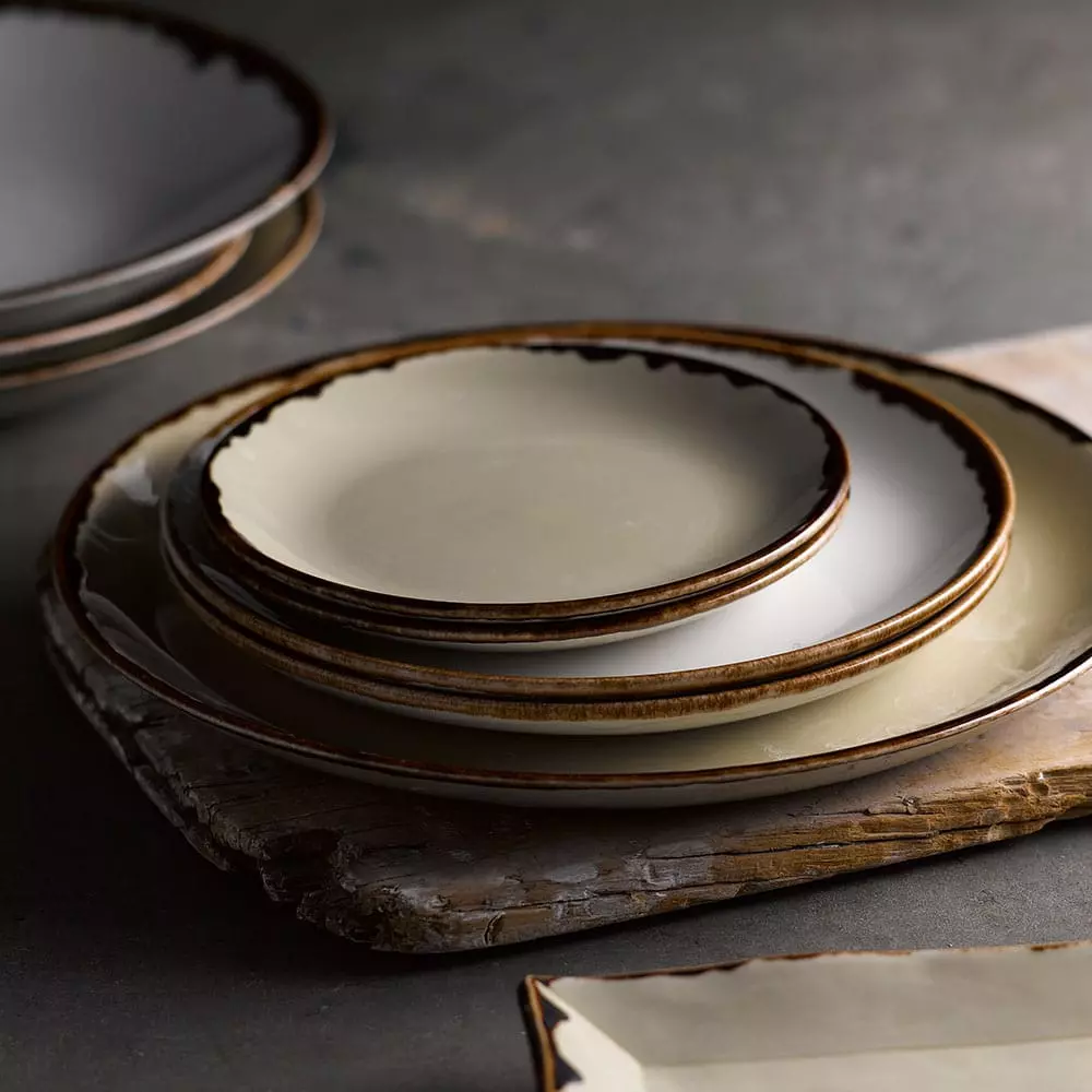 The Harvest Linen Coupe Plate captures the essence of artisan dining with its warm, natural tones and rustic hand-finished detailing.