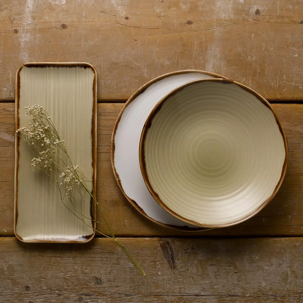 Its gently curved, organic shape and earthy tones suit farm-to-table dining concepts and professional buffet presentations.