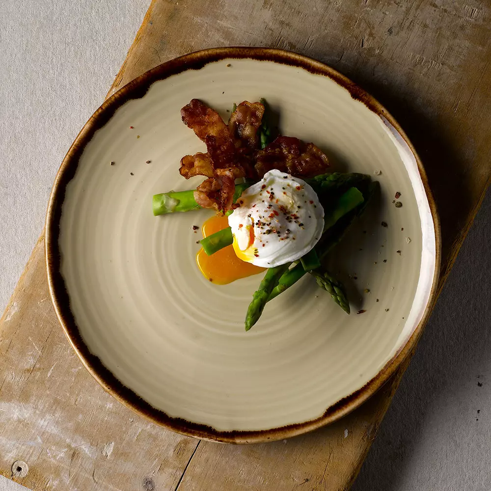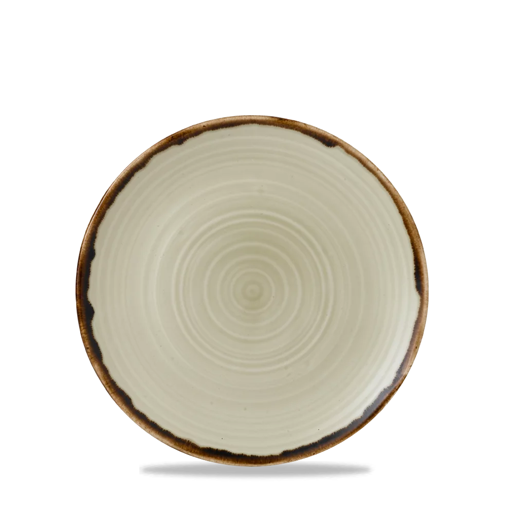 The Harvest Linen Organic Coupe Plate combines rustic charm with professional durability.