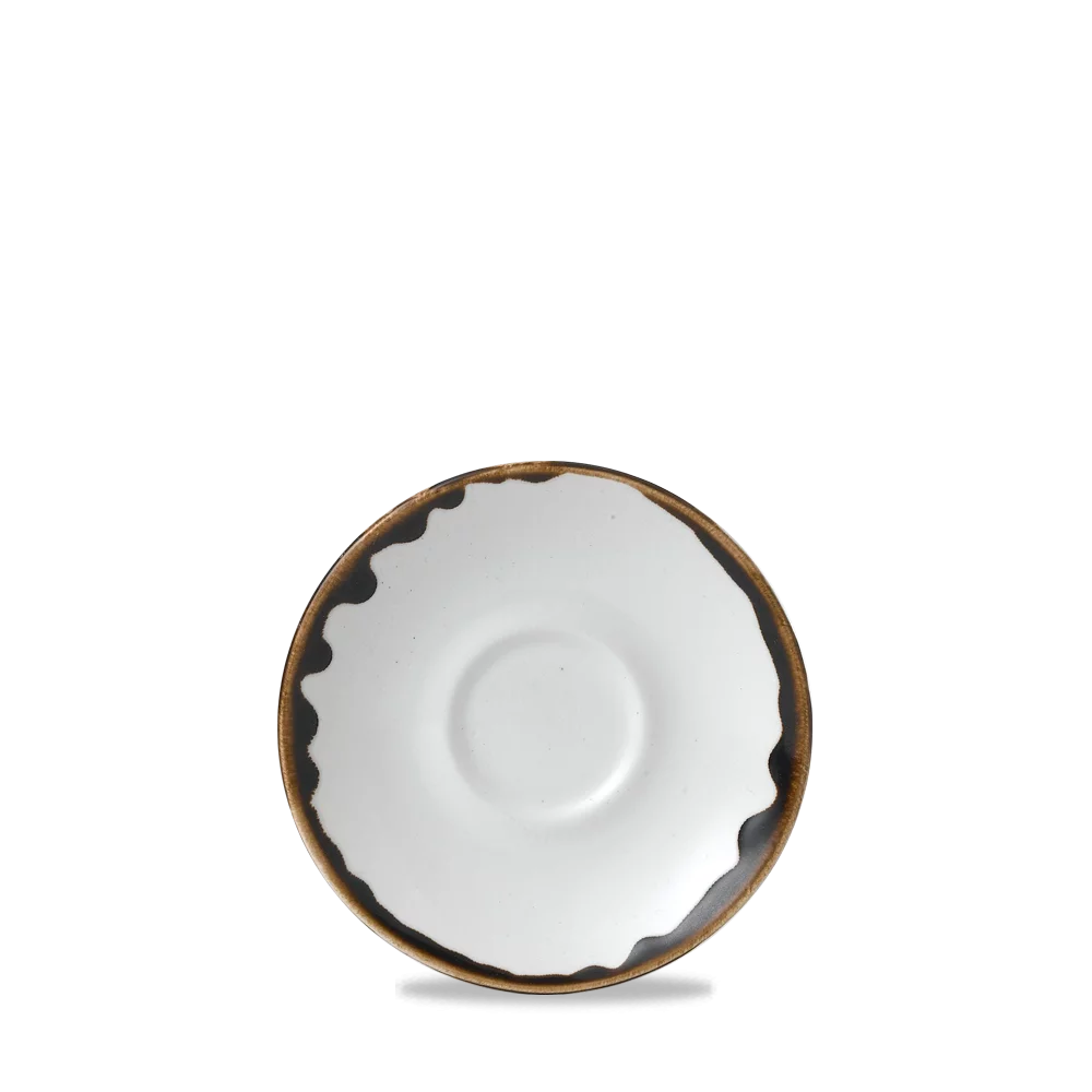 Each saucer is hand-decorated and individually finished, making every piece unique, durable, and vitrified for professional hospitality use.