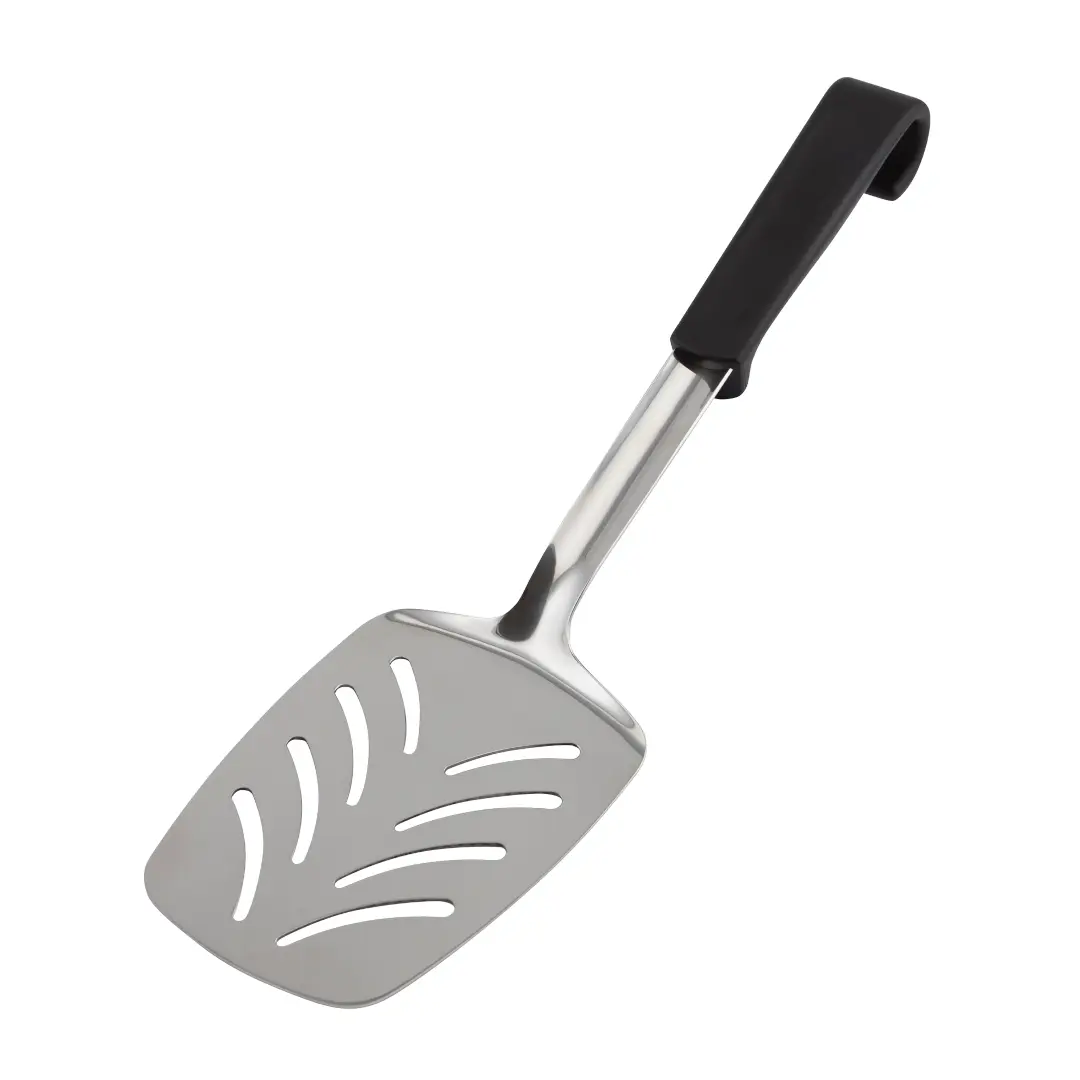 The Black Plastic Handle Slotted Turner measures 34cm in length with a 21.5cm handle for comfort and control.