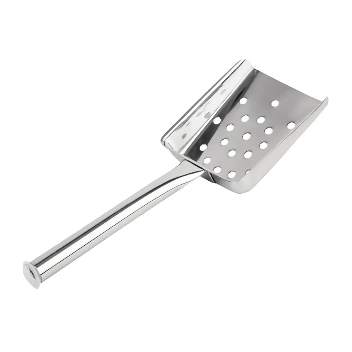 The Stainless Steel Chip Scoop with Tubular Handle is designed for fast, efficient portioning and bagging of chips in busy commercial environments. Its perforated head allows excess oil to drain while raised edges keep portions secure.