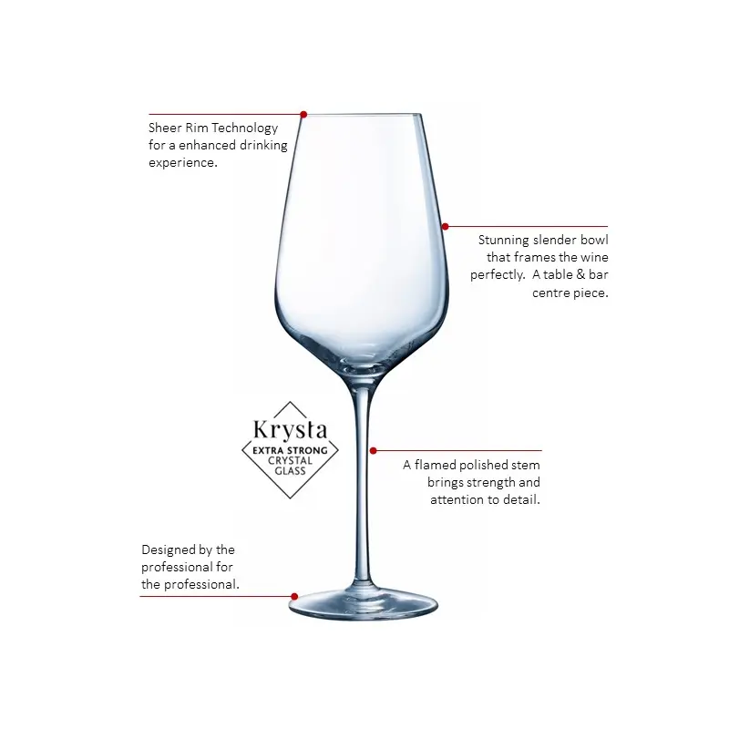 The laser-cut, polished lip enhances the wine tasting experience, while the flat, stable base ensures safe service.